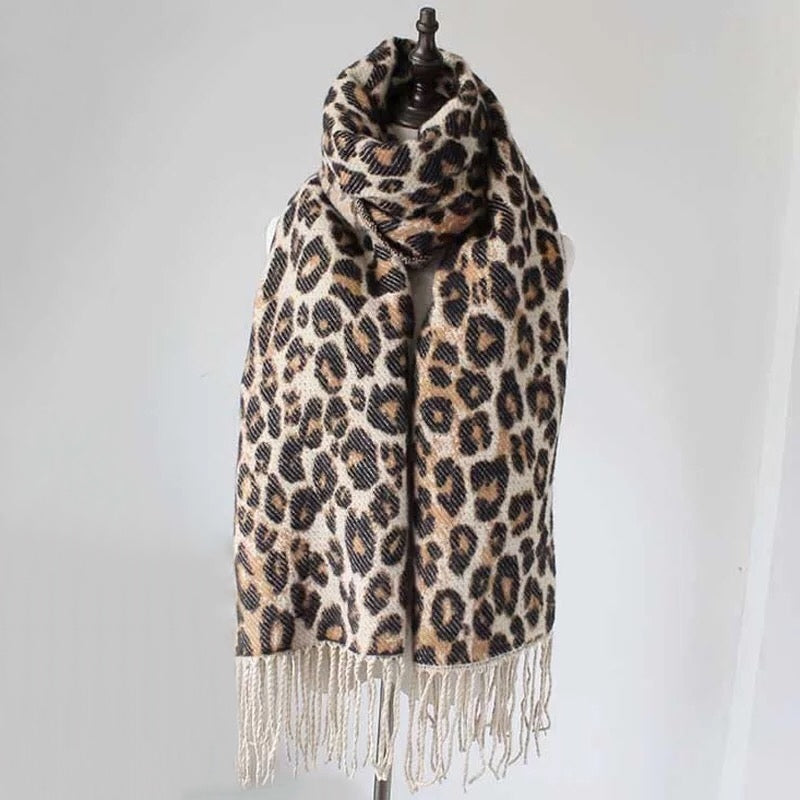 This leopard print scarf is a stylish way to stay warm and cozy, making it the perfect accessory for your fall and winter outfits. It's large enough to wrap around your neck and still have each end hanging down for maximum style.